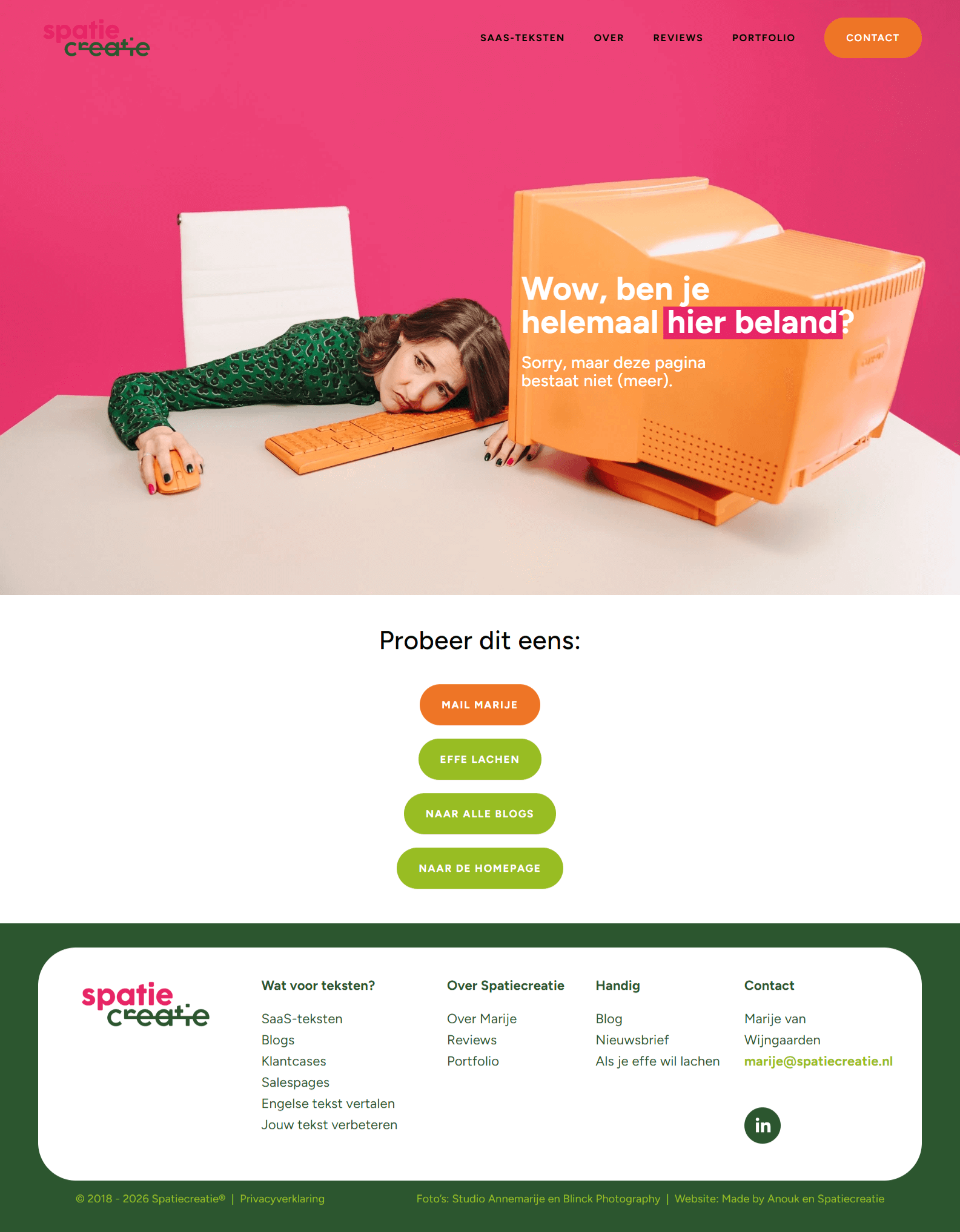 Ook een pakkende 404-pagina nodig? Of andere webteksten? Mail mij om je tekstwensen te bespreken.